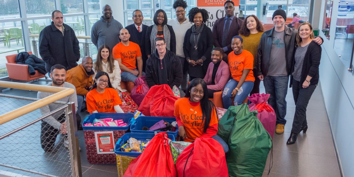 Students in William Paterson University’s Public Health Club presented a collection of clothing, toiletries, and non-perishable food donated by the campus community to the New Jersey Reentry Corporation, a nonprofit group that helps formerly incarcerated individuals and their families.